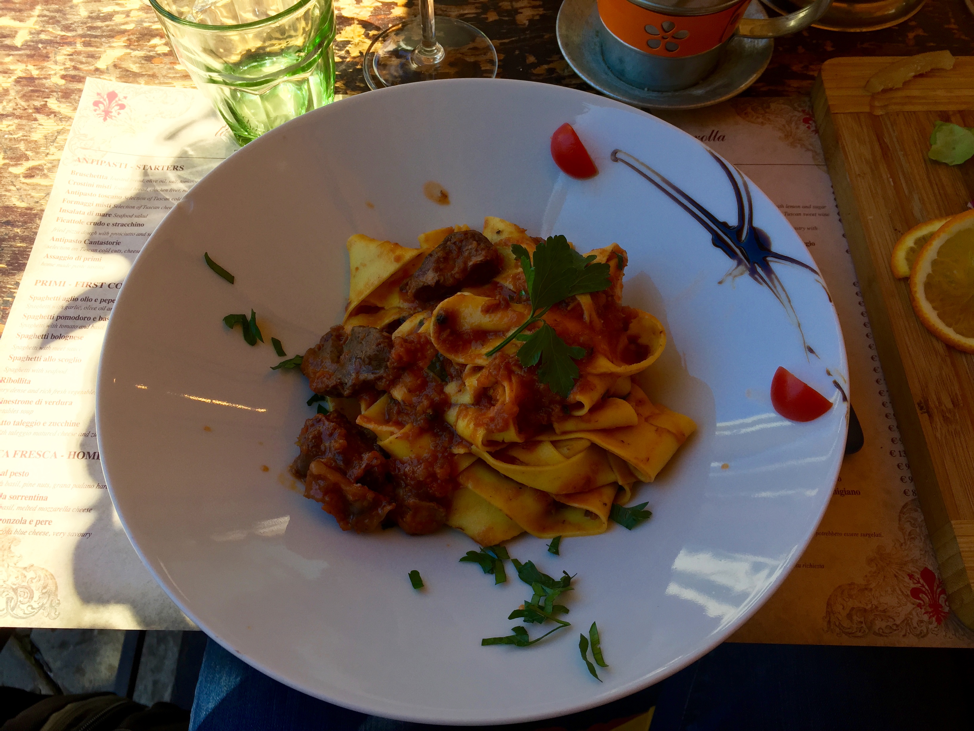 First meal in Italy. Wild boar and pasta. I forget the proper name and the name of the restaurant but it was all a recommendation from our host.