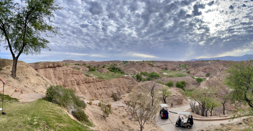 The 2022 7 Iron Whiff Golf Trip has come and gone. This year we ventured out to Mesquite, NV to cross off one of our bucket list course, Wolf Creek. While there we took a trip over to Utah and played at Sand Hollow Resort as well. Temperatures stayed tolerable for the first few days but got pretty crispy by the end of the week. In all we played Conestoga Golf Club, Wolf Creek Golf Club, Sand Hollow Resort, Oasis Golf Club and Falcon Ridge Golf Club. For the majority of us Wolf Creek was our favorite with a couple of votes coming in for Sand Hollow. However, it wouldn’t be fair not to mention how much we enjoyed Conestoga Golf Club. Fun track and if I were ranking based on hospitality, they would be first in my opinion. It should noted that the group that had early flights into Las Vegas played at Bali Hai. I was not in that group, so I don’t have pictures nor can I speak to their experience, but I heard no complaints. Tee times and lodging were handled by Lori at Golf Zoo and went off without a problem.